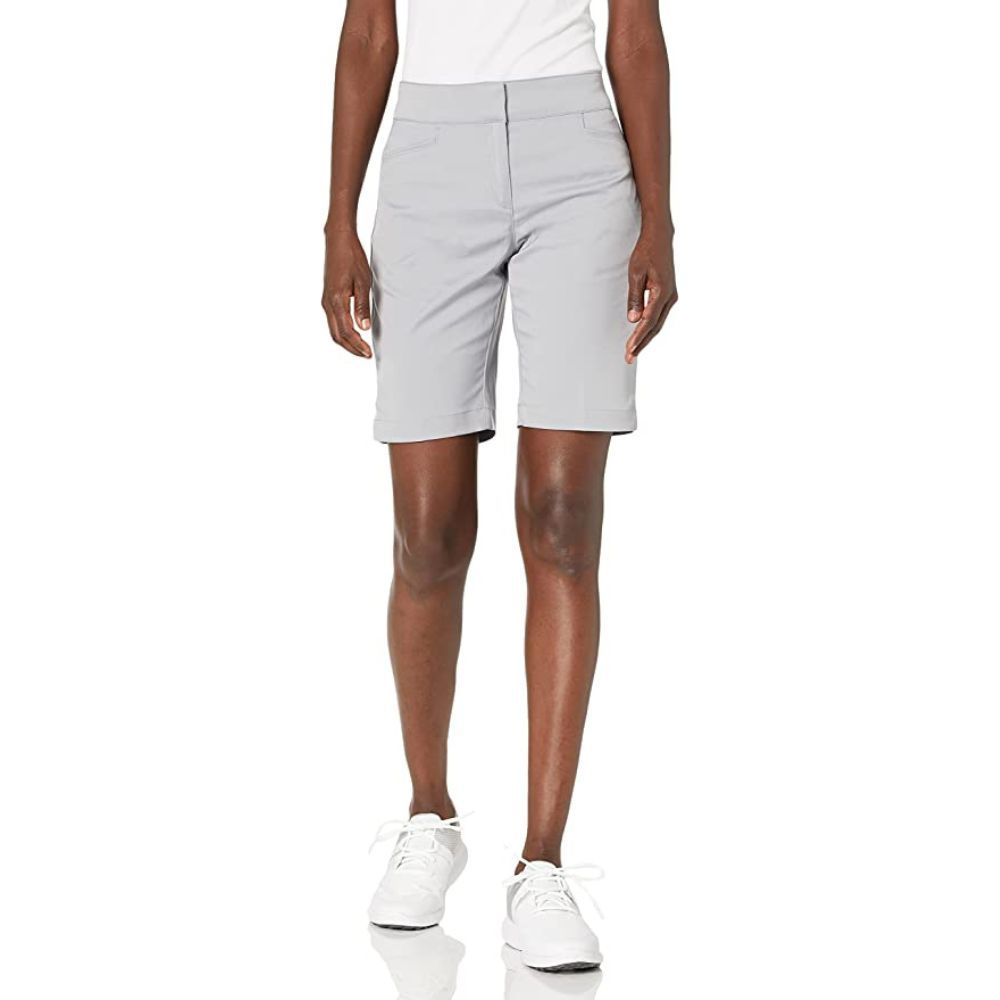 These golf shorts provide a fashionable and comfortable fit with their 9.5-inch inseam and total length of 19 inches. The sleek style ends just above the knee for a more modest look. The comfy stretch waistband allows the shorts to move with you so that you don't feel constrained in any way. You'll look great and feel great when you wear these PGA Tour Women's Stretch360 Golf Shorts. So why wait? Get your pair today!