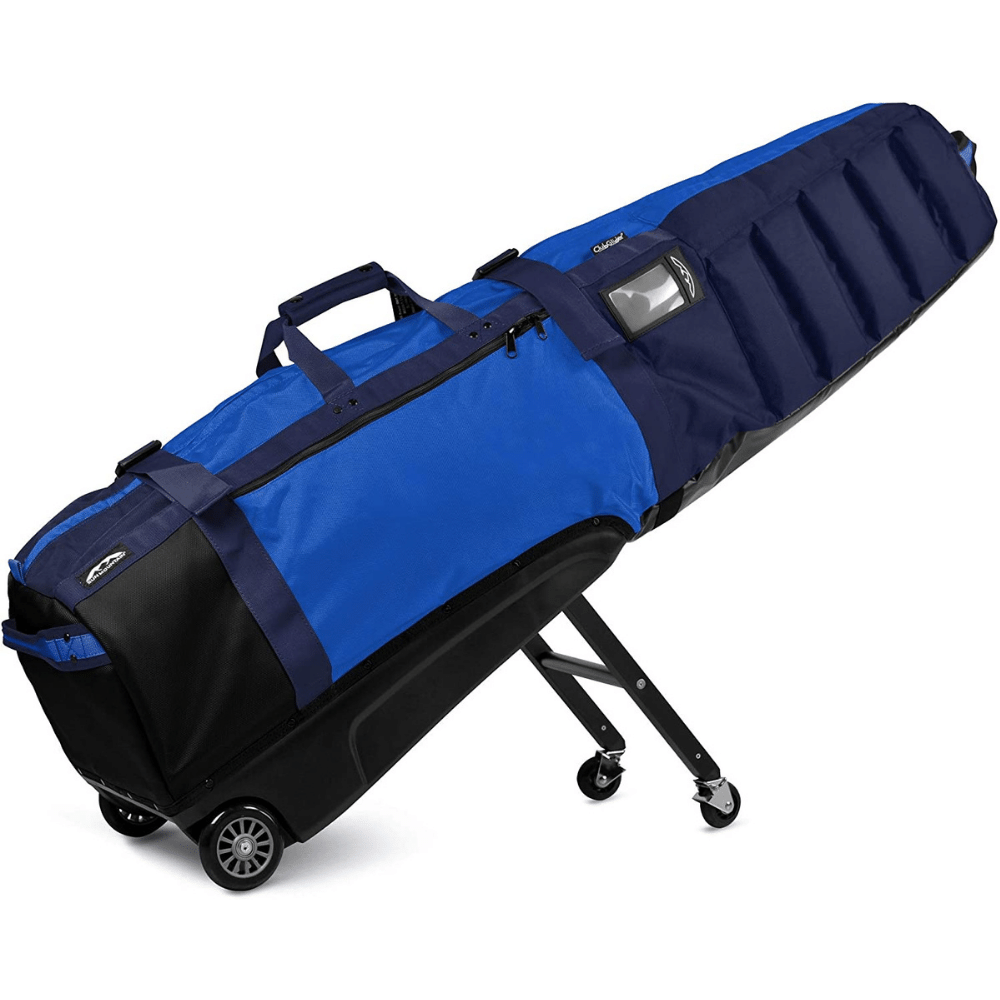 The Single piece burst-proof construction is made to withstand rough treatment, and the over-the-top zipper makes for easy loading. The integrated carry handle makes it easy to transport, while the patented adjustable restraint device secures your golf clubs in place. Inline skate wheels and bearings make for smooth rolling, even over rough terrain.