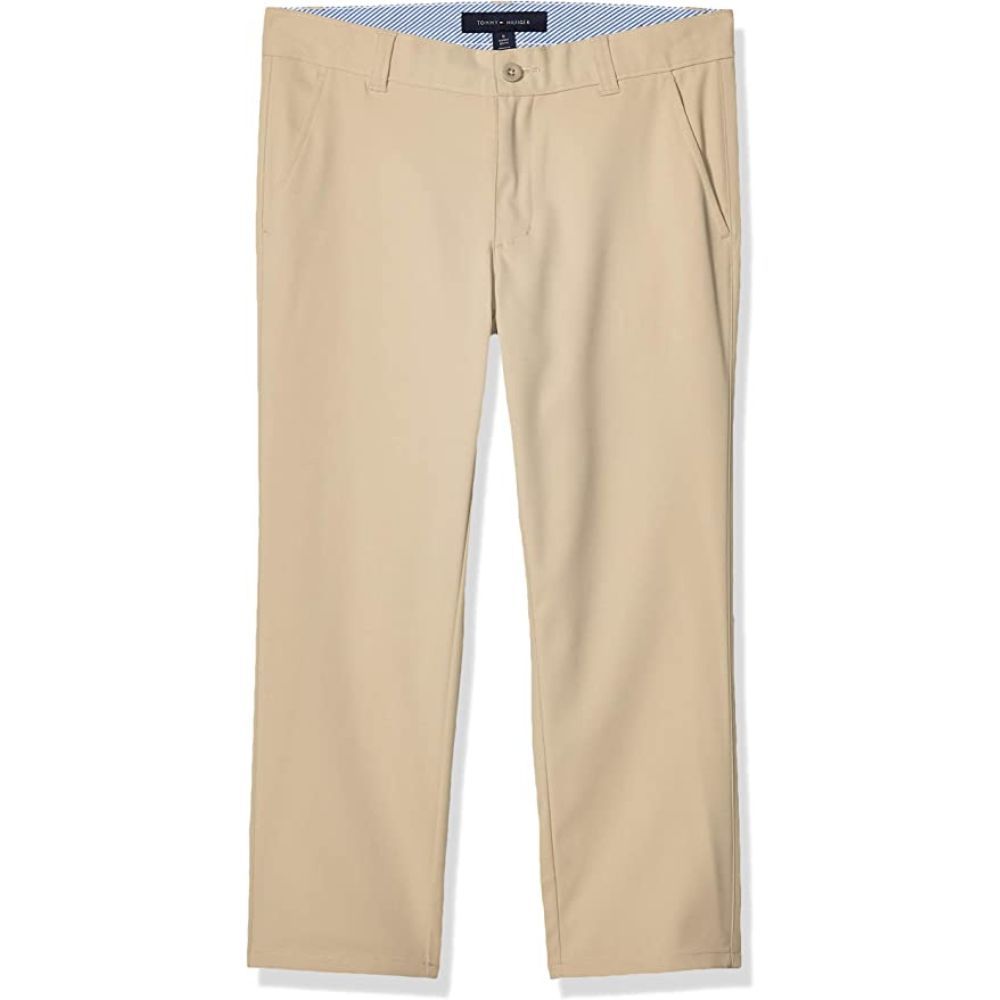 Young golfers searching for a fashionable way to hit the course will love Tommy Hilfiger Boys Golf Pants. These semi-fitted pants provide maximum comfort and mobility, plus feature a zip fly with hook and eye closure so they stay in place no matter how hard you swing or run. Made from high-tech fabrics that won't shrink or fade even after repeat washes, these durable bottoms are sure to withstand any outdoor adventure!