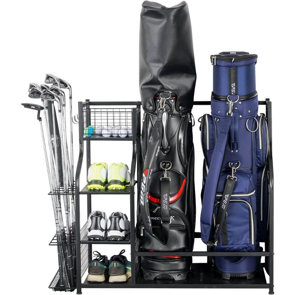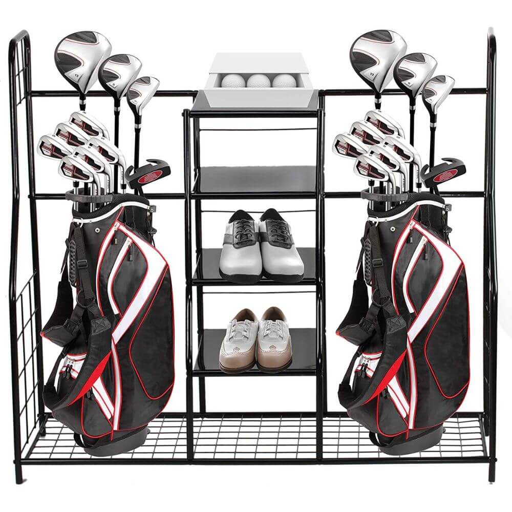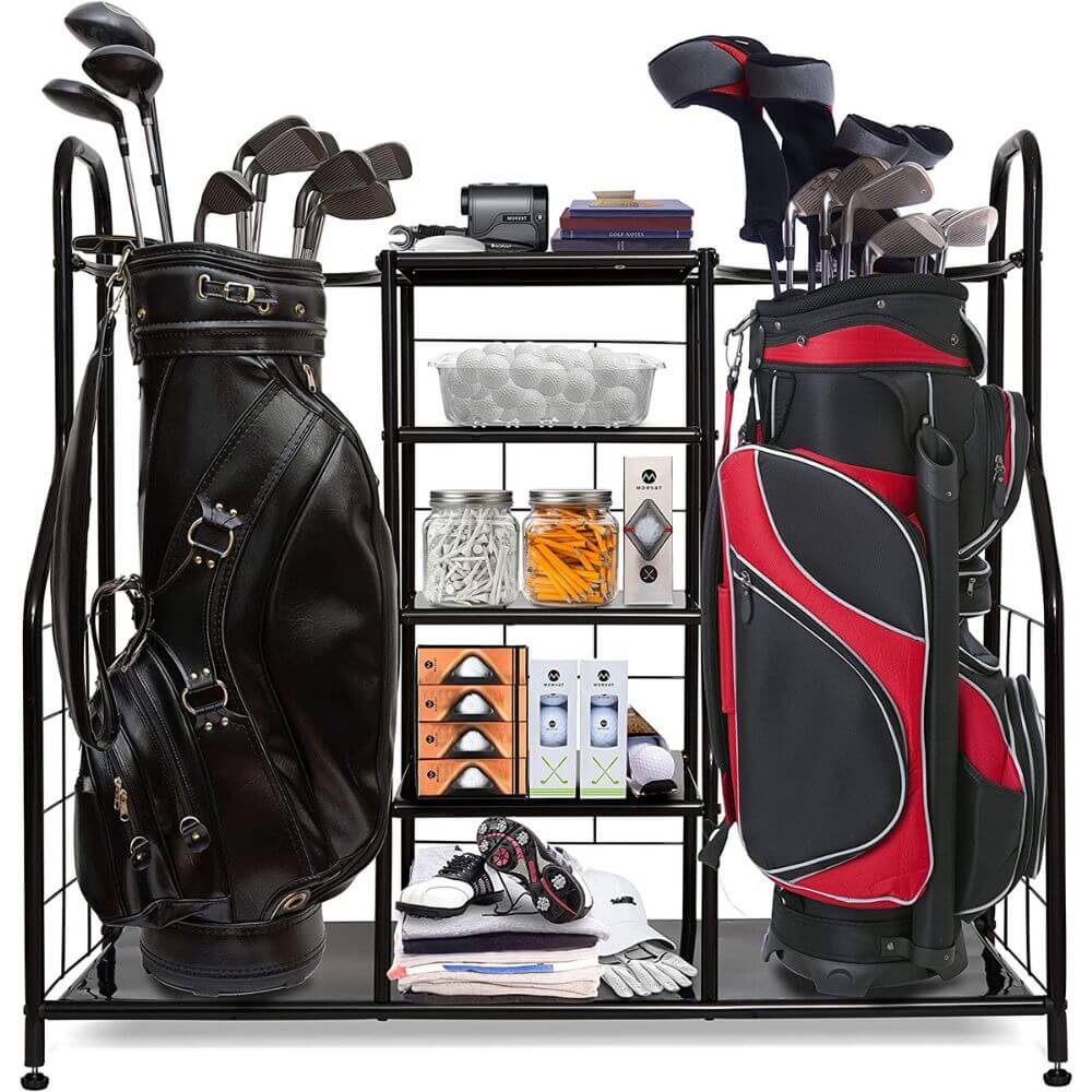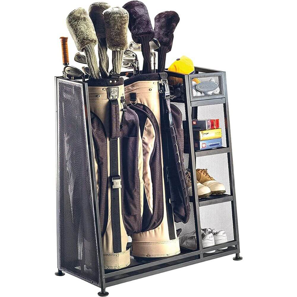 Passionate golfers: this is for you. Your search for the perfect golf bag organizer stops here! We've rounded up five of the best storage racks on the market. They're designed to store and protect all of your clubs, bags, hats, shoes, and other equipment. With adjustable shelving units and stands offering ample room for each item in your collection - you'll never have an issue keeping everything safe and secure. Not only are these stands super functional but they look pretty cool too.