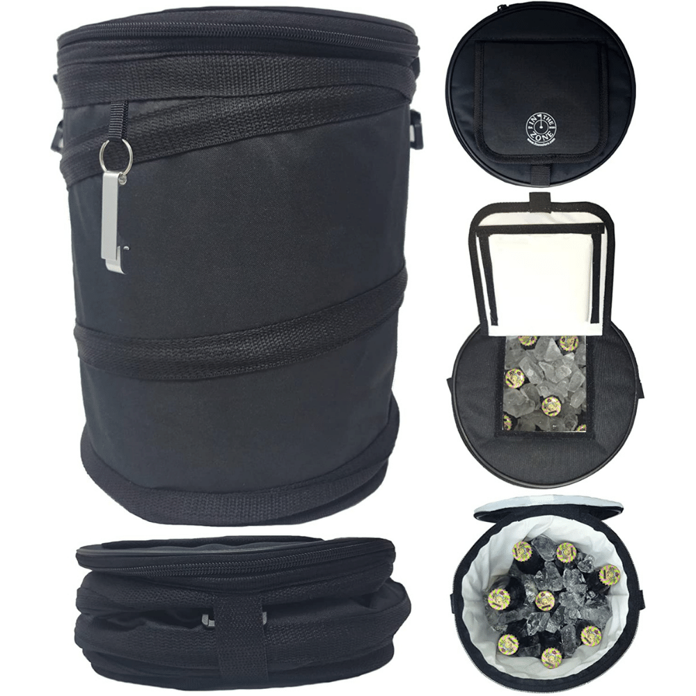 We love the convenience of this cooler. It collapses to a super compact 3.5 inches when it's not being used. And with 2 straps on the side of the cooler, it stays compressed so it can be easily folded away. It has a built-in metal spring so it quickly pops up and holds its shape. The cooler is also leak-proof, so you'll never have to worry about leaks ruining your game. Plus, the InTheZone Golf Cart Cooler is resistant to light rain, making it perfect for all weather conditions. Whether you're packing bottles or cans, this cooler is guaranteed to keep your drinks cold and refreshing for up to 6 hours. So make your next round of golf even more enjoyable with the InTheZone Golf Cart Cooler.