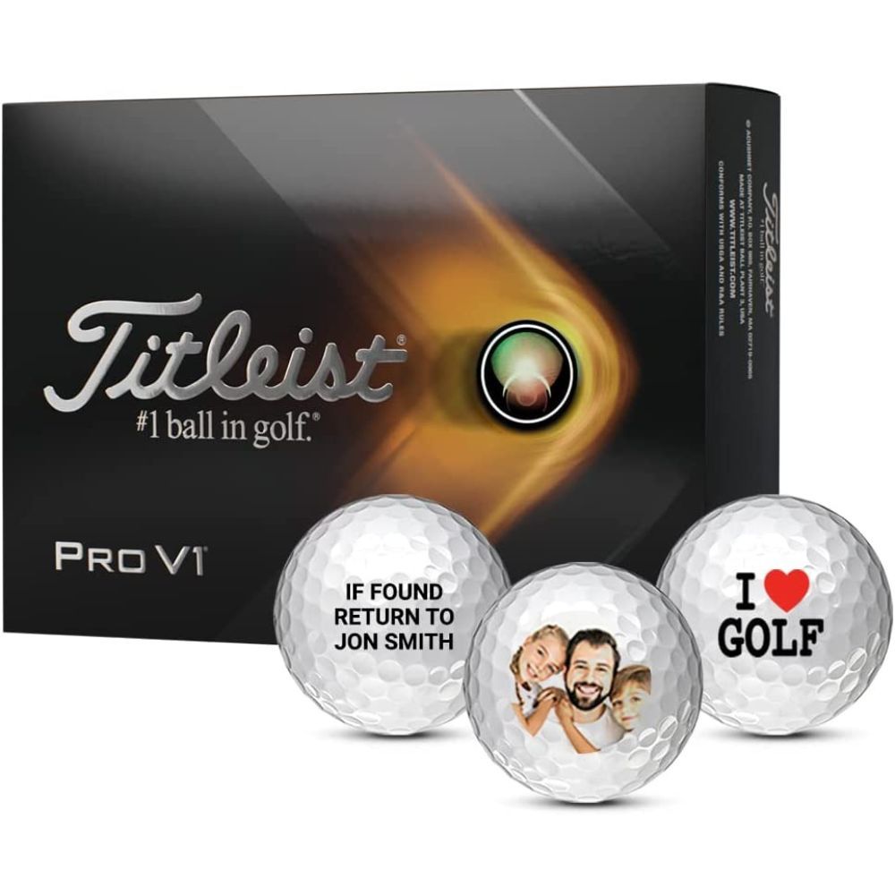 If you're looking for a way to stand out on the golf course, look no further than custom golf balls. Titleist offers their Pro V1 ball in a customized version, letting you add your own personal touch to each round. You can choose to have one or two sides of the ball printed with whatever design or text you like, making it easy to identify your ball on the green or have some fun with your groomsmen. And because the Pro V1 is designed for maximum performance, you'll be able to hit those long drives and pin high approach shots with ease. So why not customize your New Titleist Pro V1 today?