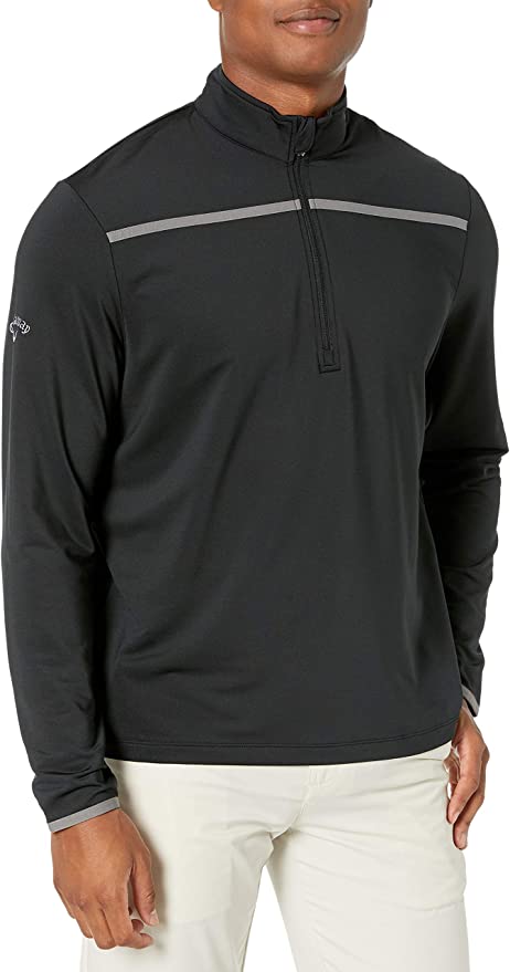 Golfers everywhere are raving about Callaway's 1/4 Zip Pullover. This pullover is designed to keep you looking and feeling cool on the golf course. Callaway's Opti-Dri technology quickly draws moisture away from the body, and its Opti-Stretch feature allows for greater flexibility in movement to match any golf swing. This garment not only provides superior performance but also classic Callaway style with a Tour Logo displayed prominently on the right sleeve. The roomier fit of the Callaway Standard Collection makes it ideal for both leisurely days out on the town and intense rounds of golf!