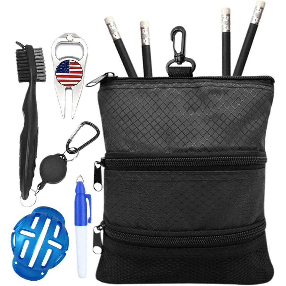 - Extras Included With Pouch Set - 4 Pencils, Divot Tool With Ball Marker, Black Golf Brush, Golf Ball Liner