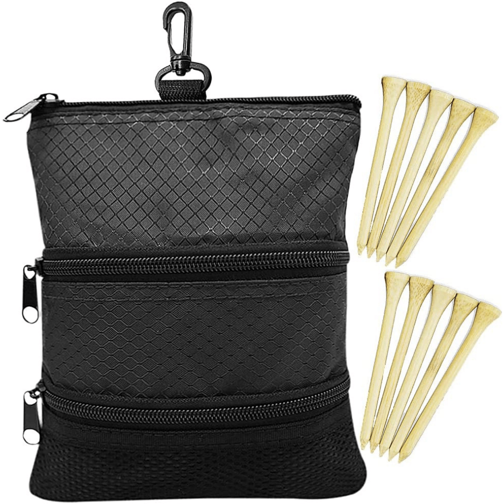 The Golf Tee Pouch solves this problem by keeping your tees in one place and close at hand. This pouch attaches easily to any golf bag and can be perfect for your other golf essentials. But, do you go with a simple pouch just for tees or one for your essentials too?