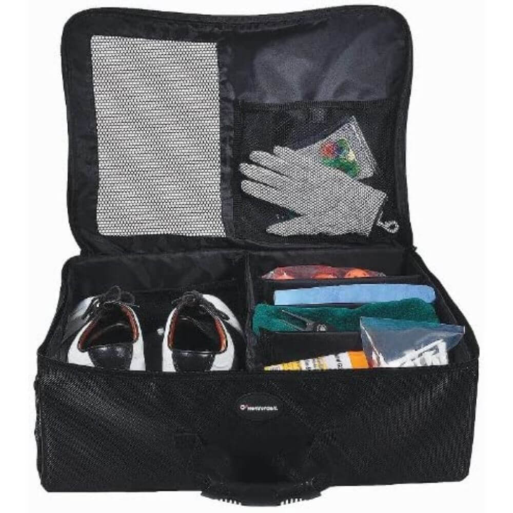 Featuring dedicated spaces for shoes and balls, as well as pockets for tees and books, this trunk locker is an essential tool for any duffer's arsenal. Plus there's even space to hold additional items like golf shirts, towels, hats, and other accessories making it perfect for keeping your gear clean and protected from wind, rain, and pesky bugs.