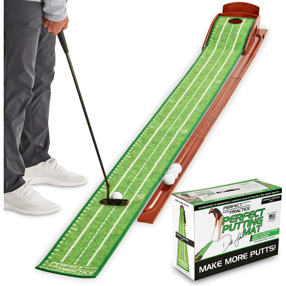 Here's a great value option, SKLZ Accelerator Pro Putting Mat or there's Dustin Johnson's favorite, the PERFECT PRACTICE Putting mat.