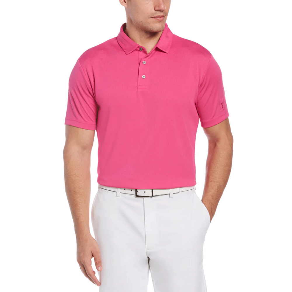 Looking for a golf shirt that will keep you cool and comfortable all day long? Look no further than the PGA Tour AirFlux Mesh Polo. This shirt is made from a lightweight and breathable AirFlux ventilated mesh fabric, perfect for hot sunny days. The moisture-wicking technology keeps you dry by moving perspiration away from your body, and the built-in sun protection helps prevent UV rays from penetrating the fabric. Whether you're out on the golf course or just enjoying a day in the sun, the PGA Tour AirFlux Mesh Polo is sure to keep you feeling comfortable and looking great.