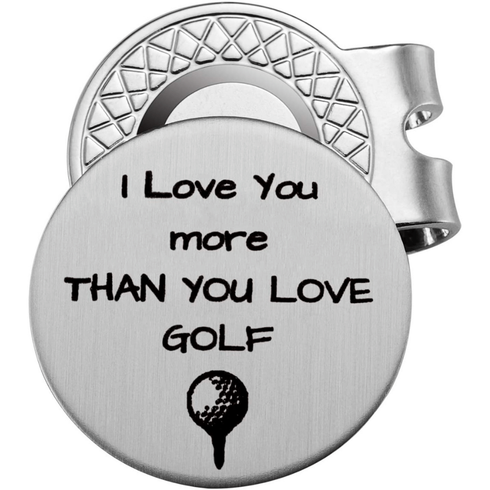 This one-of-a-kind, stainless steel marker, 1 inch in diameter, is engraved with a sweet message ("I Love You more THAN YOU LOVE GOLF) that is sure to touch their heart. The silver color is sleek and stylish, and the magnetic clip means it can attach to their hat or belt loop for easy access. Best of all, it comes packaged in an elegant gift box, making it a truly special present.